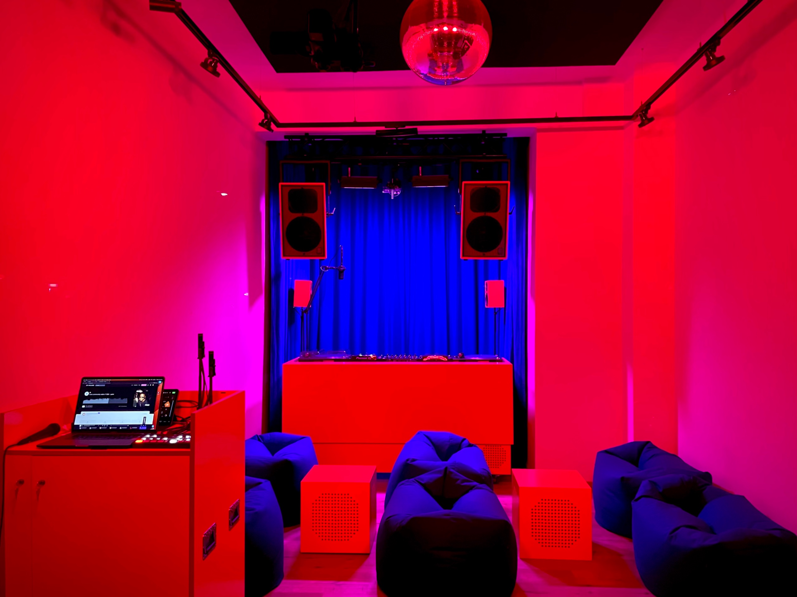 Die Veranstaltung ist öffentlich und ohne Anmeldung zugänglich. Der Raum ist bewusst klein und familiär gehalten, wodurch ein direkter Austausch zwischen Besucher*innen, DJs und Entwicklern möglich wird. Sitzgelegenheiten in Form von Sitzsäcken sind vorhanden.